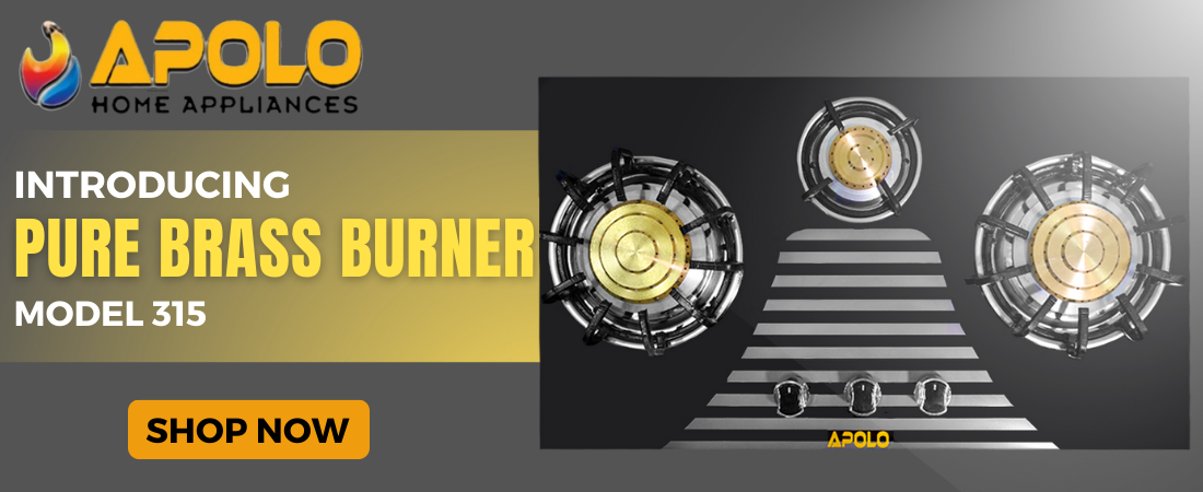 Model 315 - Pure Brass Burner - 3 Burner - Manual Hob / Stove - 100% Pure Stainless Steel Top