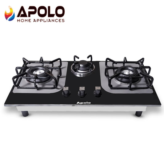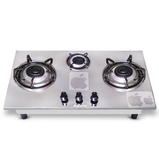 Model 315 - Pure Brass Burner - 3 Burner - Manual Hob / Stove - 100% Pure Stainless Steel Top
