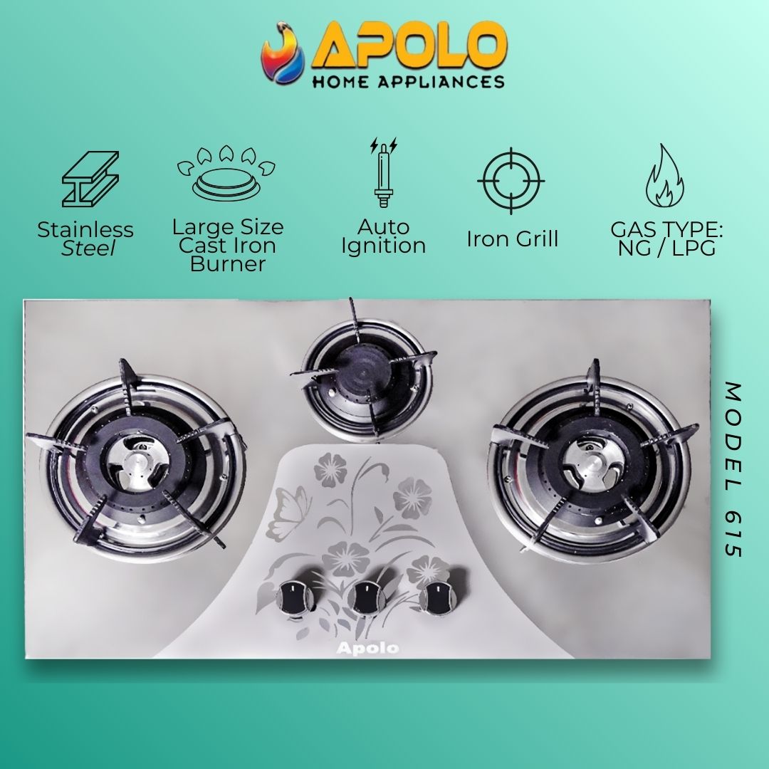 Model 615 - 3 Burner - Automatic Hob / Stove - 100% Pure Stainless Steel Top