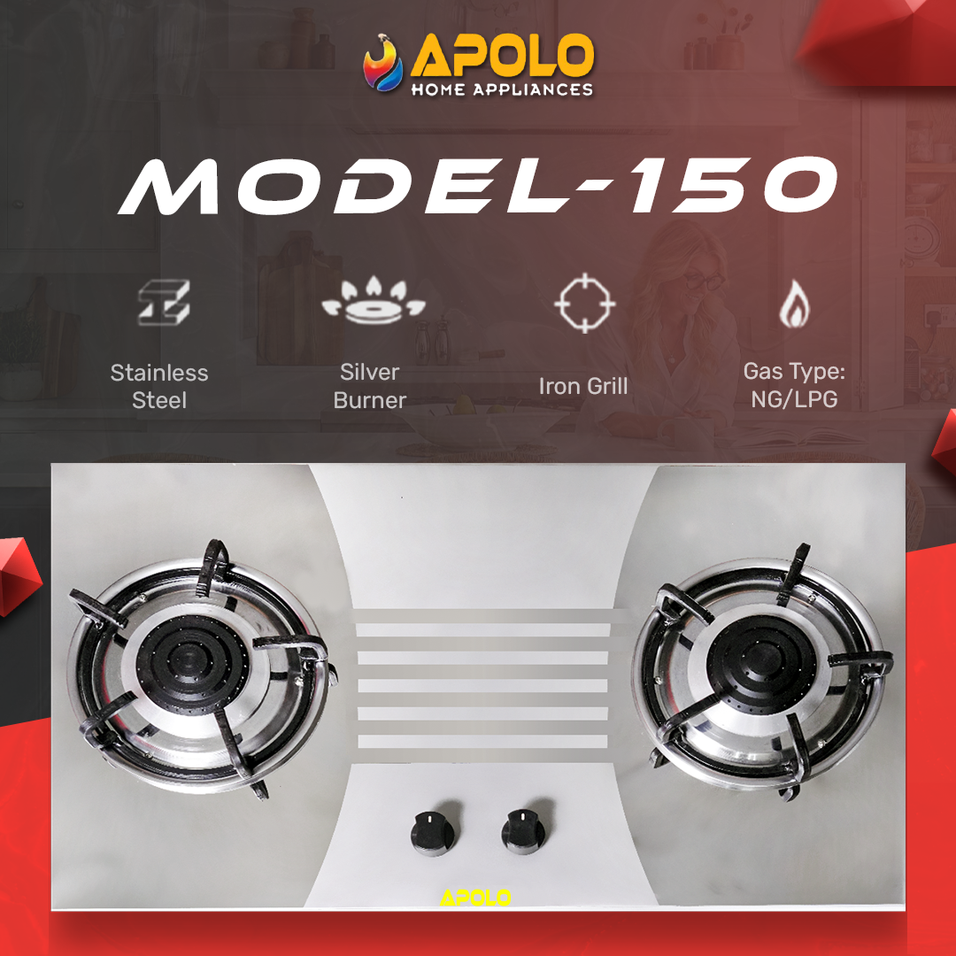 Model 150 - 2 Burner - Manual Hob / Stove - 100% Pure Stainless Steel Top