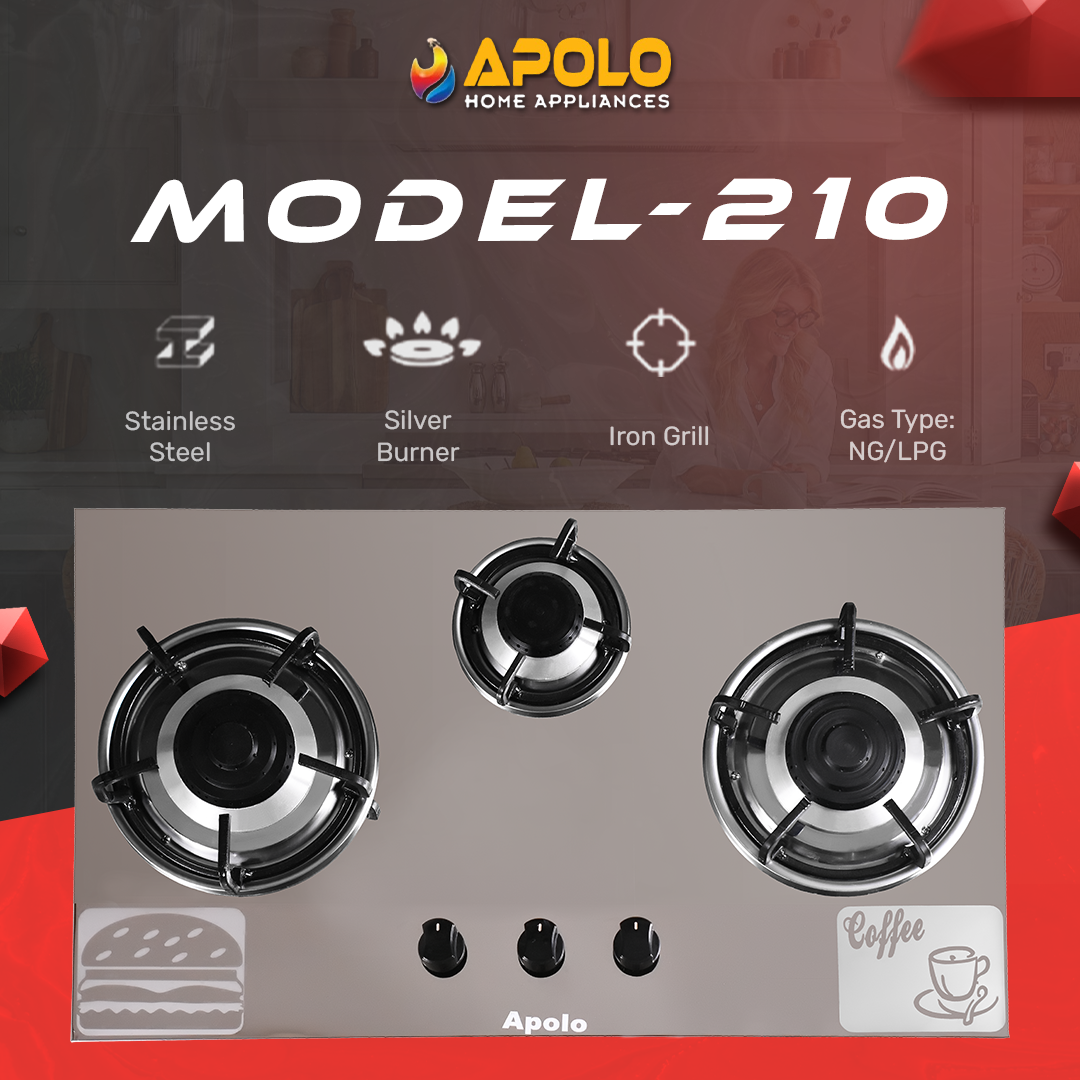 Model 210 - 3 Burner - Manual Hob / Stove - 100% Pure Stainless Steel Top
