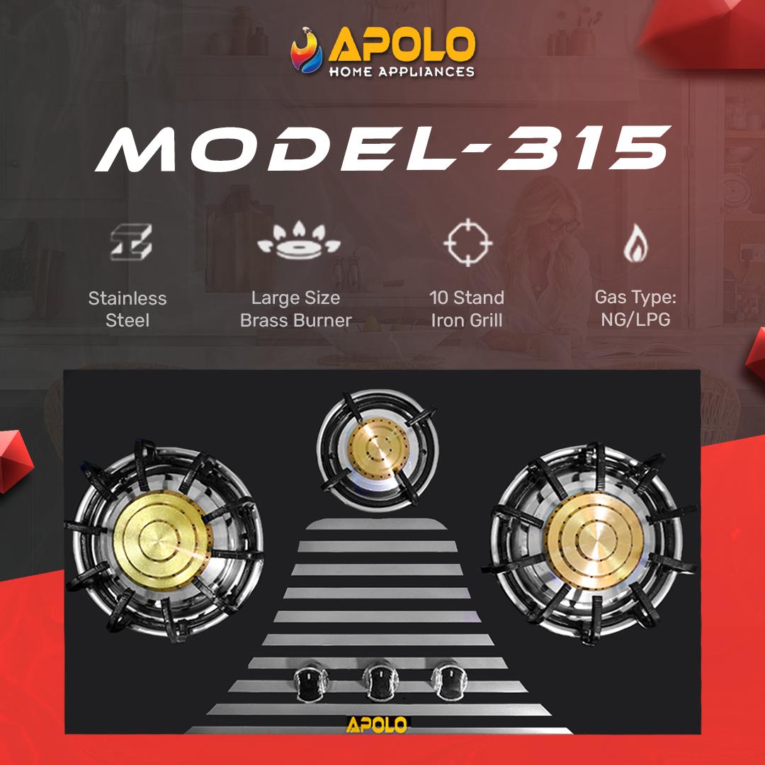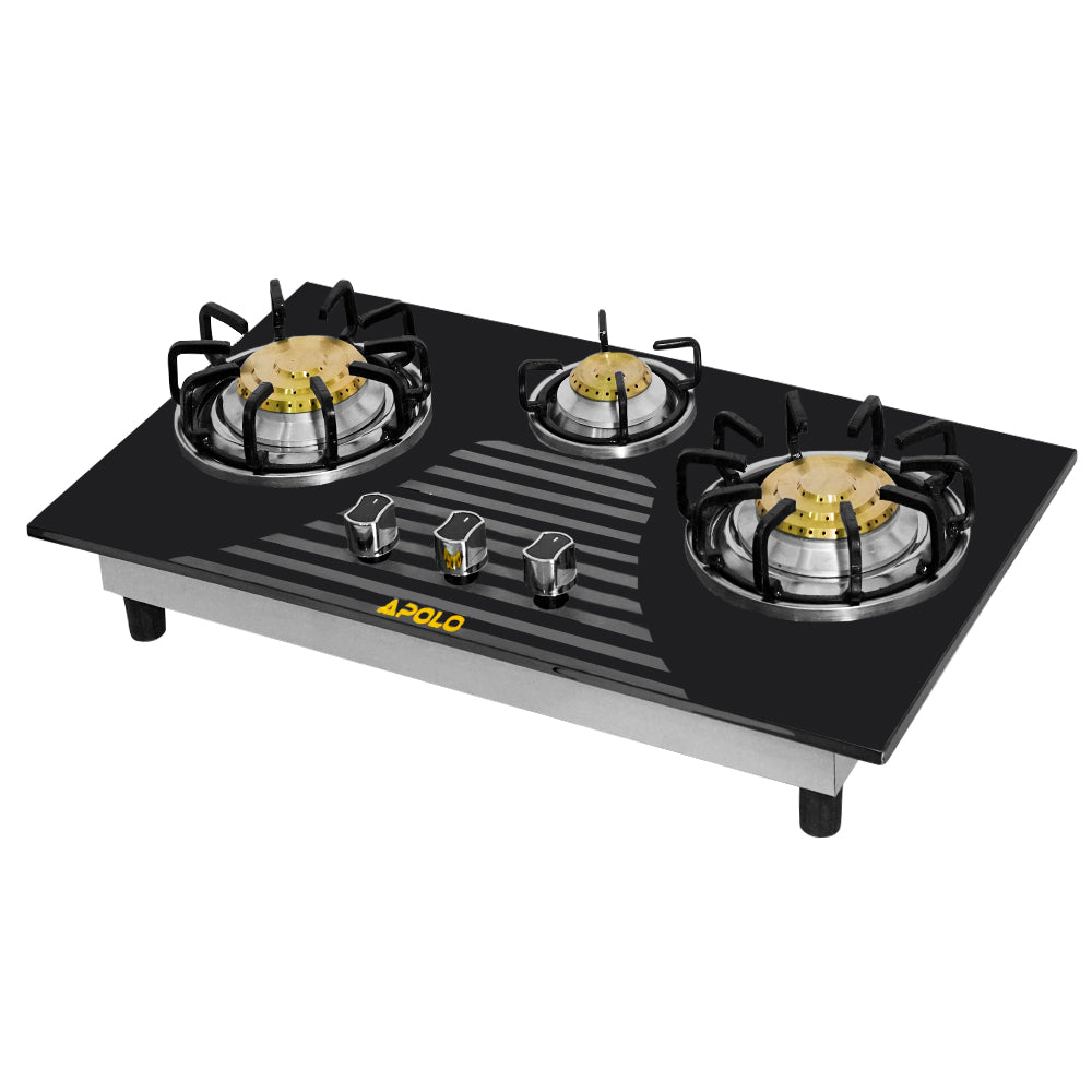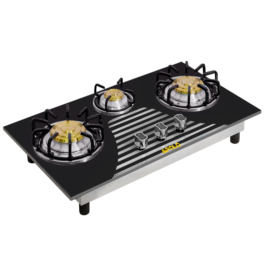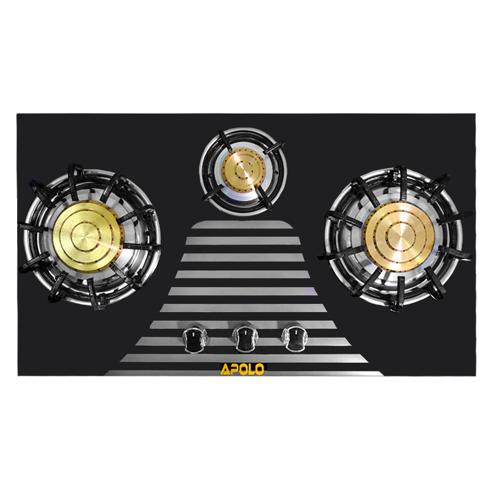 Model 315 - Pure Brass Burner - 3 Burner - Manual Hob / Stove - 100% Pure Stainless Steel Top