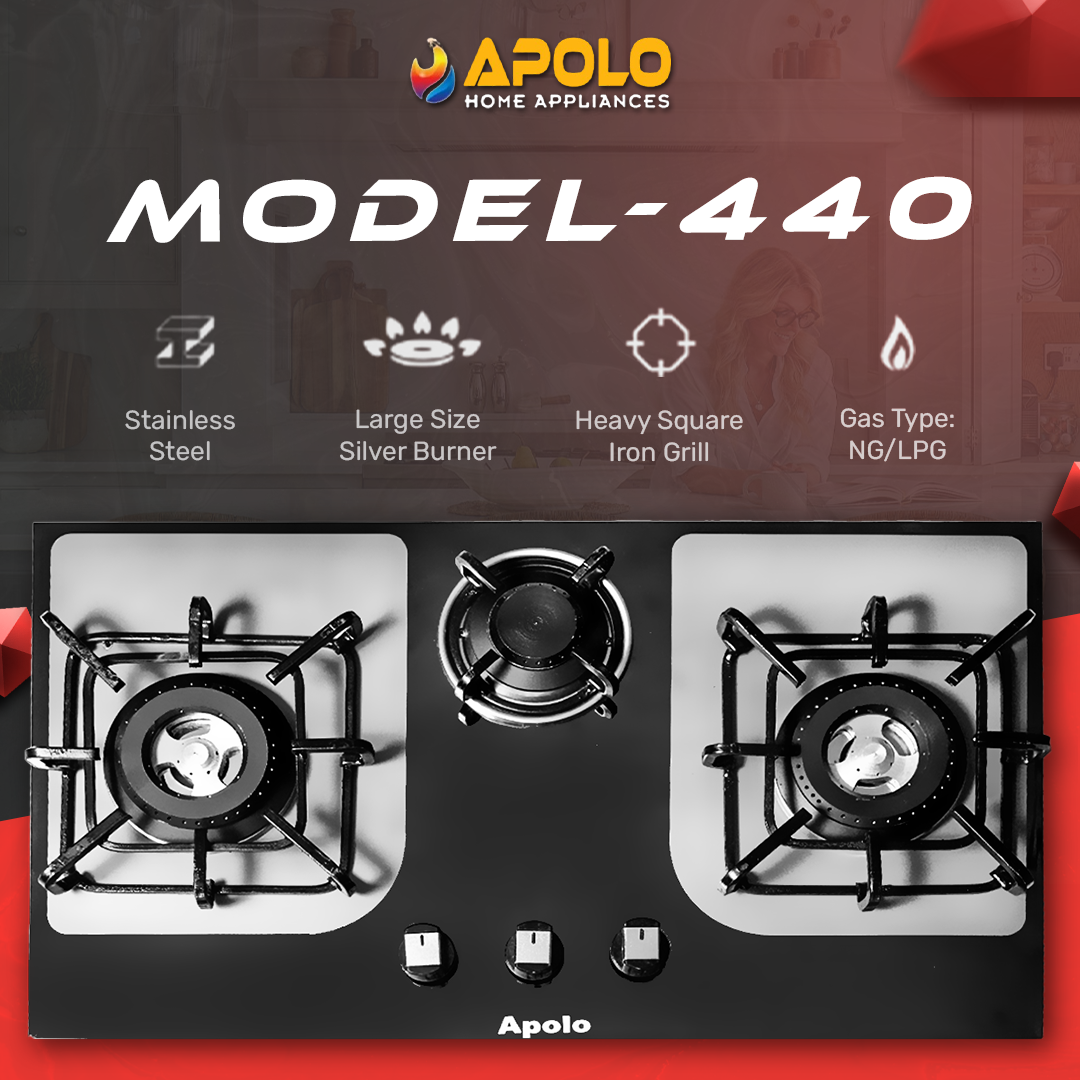 Model 440 - 3 Burner - Manual Hob / Stove - 100% Pure Stainless Steel Top