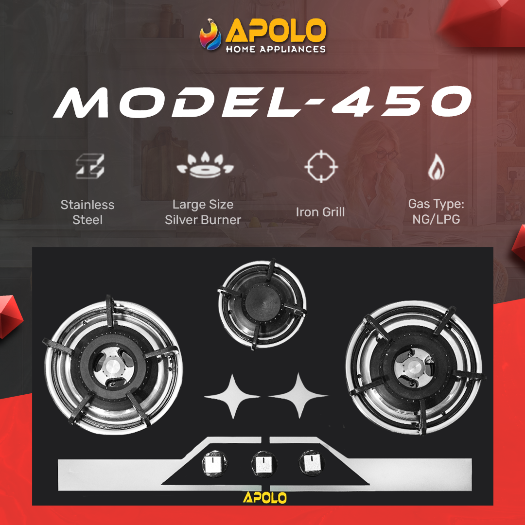 Model 450 - 3 Burner - Manual Hob / Stove - 100% Pure Stainless Steel Top