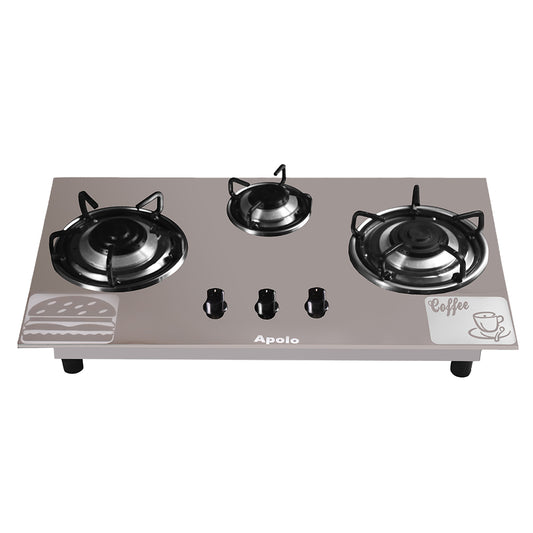 Model 315 - Pure Brass Burner - 3 Burner - Manual Hob / Stove - 100% Pure Stainless Steel Top